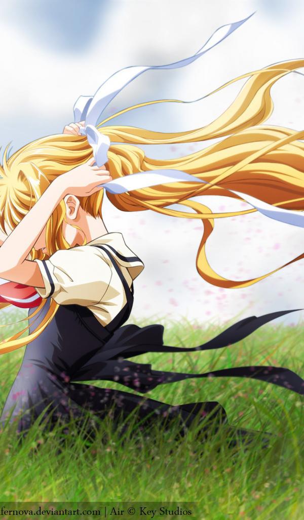 Wallpaper Anime girl among a field on a windy day