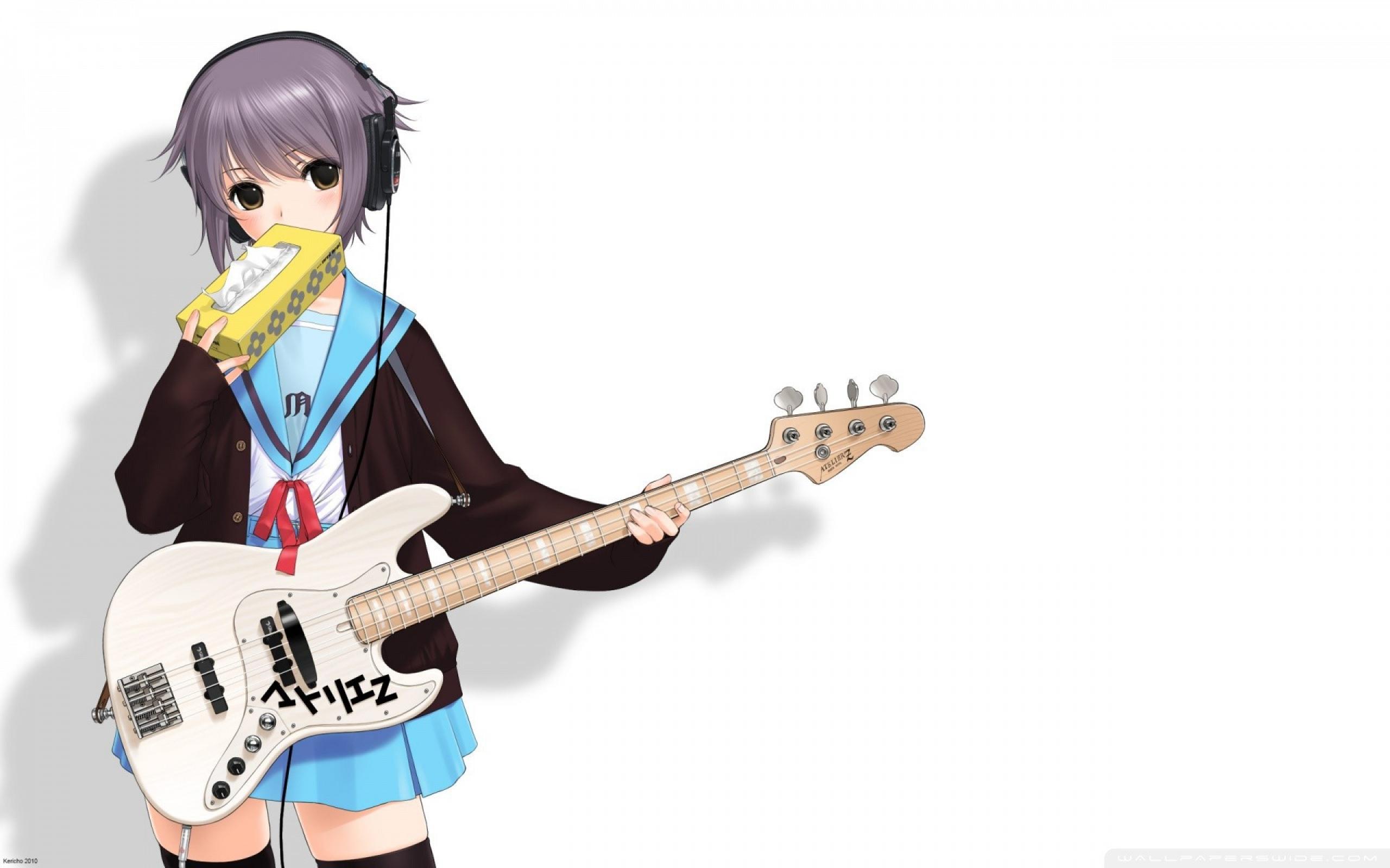 Wallpaper Anime girl with guitar and headphones