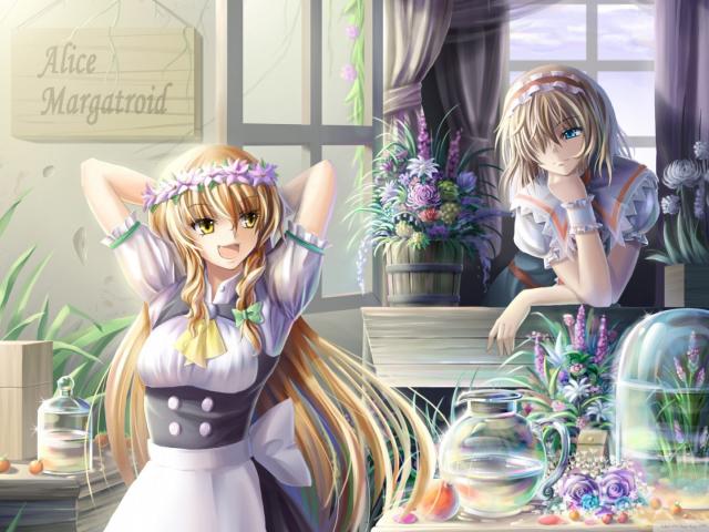 Wallpaper Anime girl selling flowers