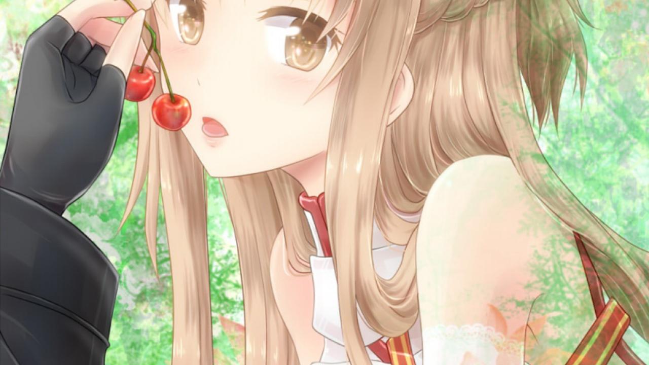 Wallpaper Anime girl eating cherries Yuuki Asuna