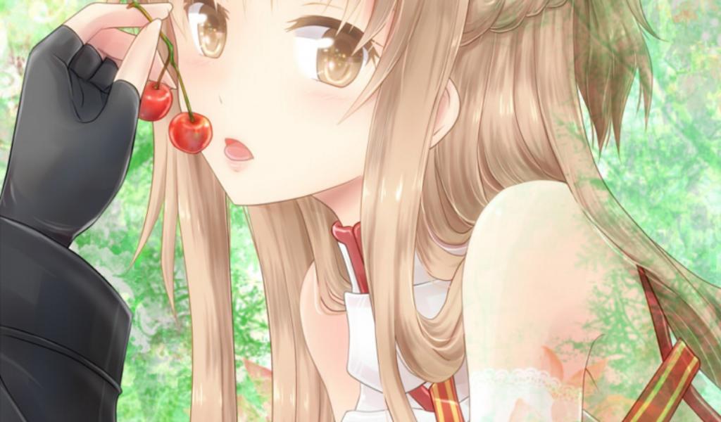 Wallpaper Anime girl eating cherries Yuuki Asuna
