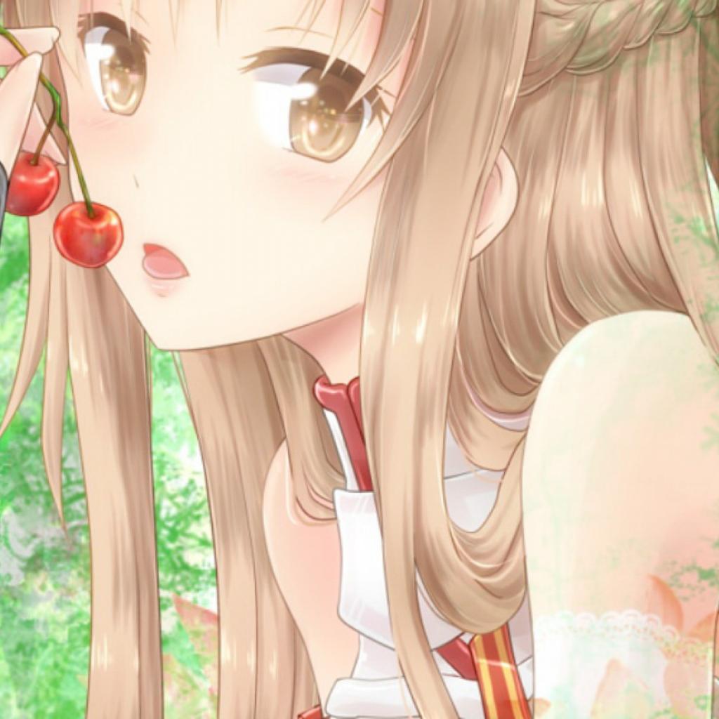 Wallpaper Anime girl eating cherries Yuuki Asuna