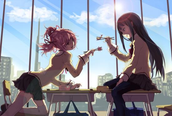 Wallpaper Girls eat your dinner, girl fairy Madoka