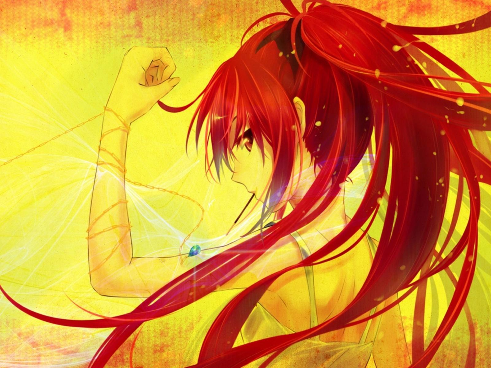 Wallpaper The girl on a yellow background, anime girl fairy Madoka