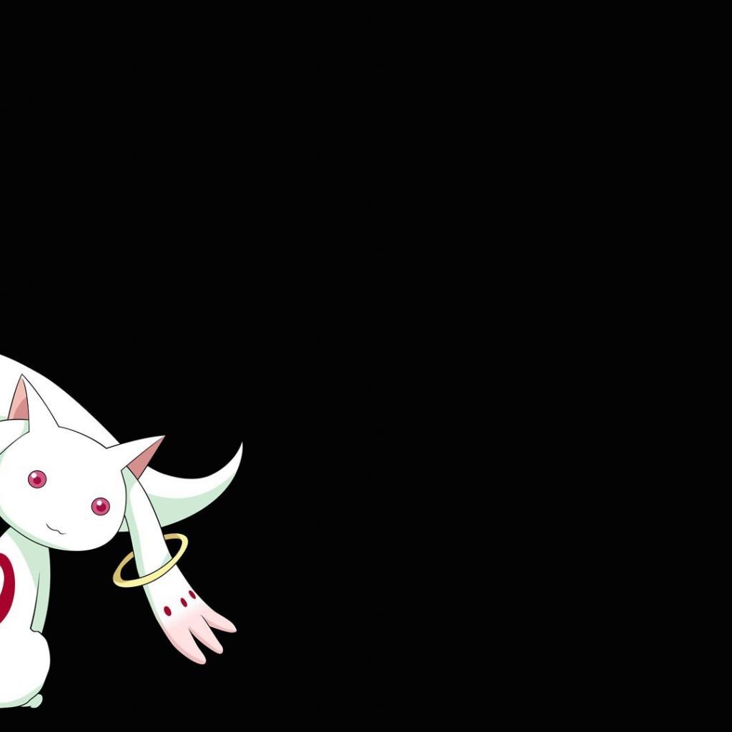 Wallpaper Magic cat on a black background, anime fairy girl Madoka