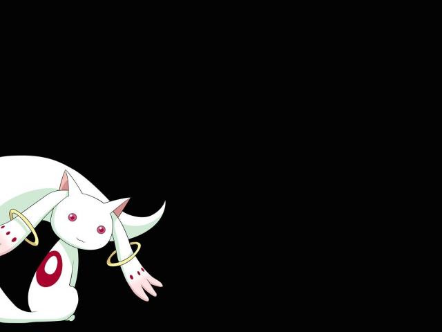 Wallpaper Magic cat on a black background, anime fairy girl Madoka