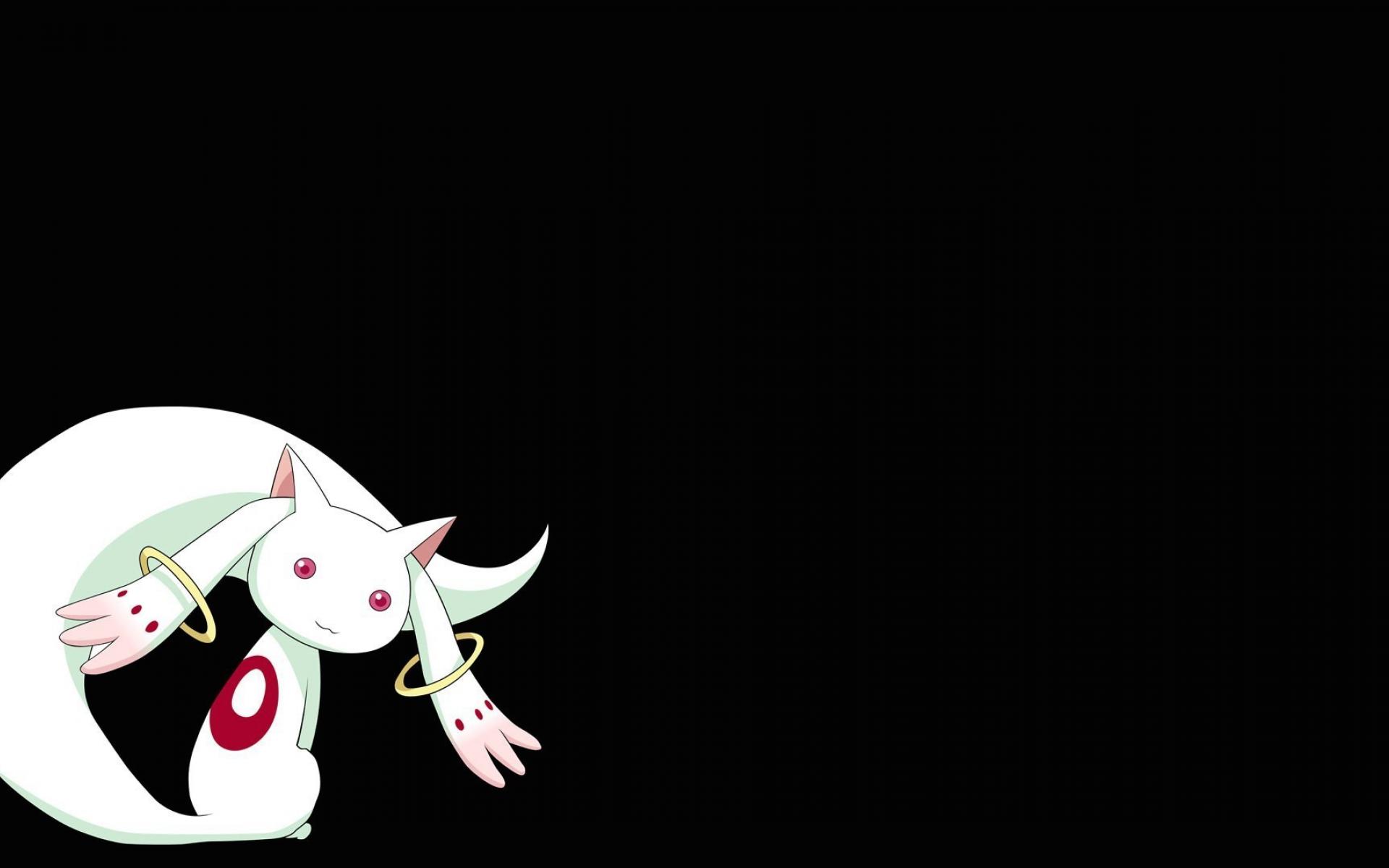 Wallpaper Magic cat on a black background, anime fairy girl Madoka