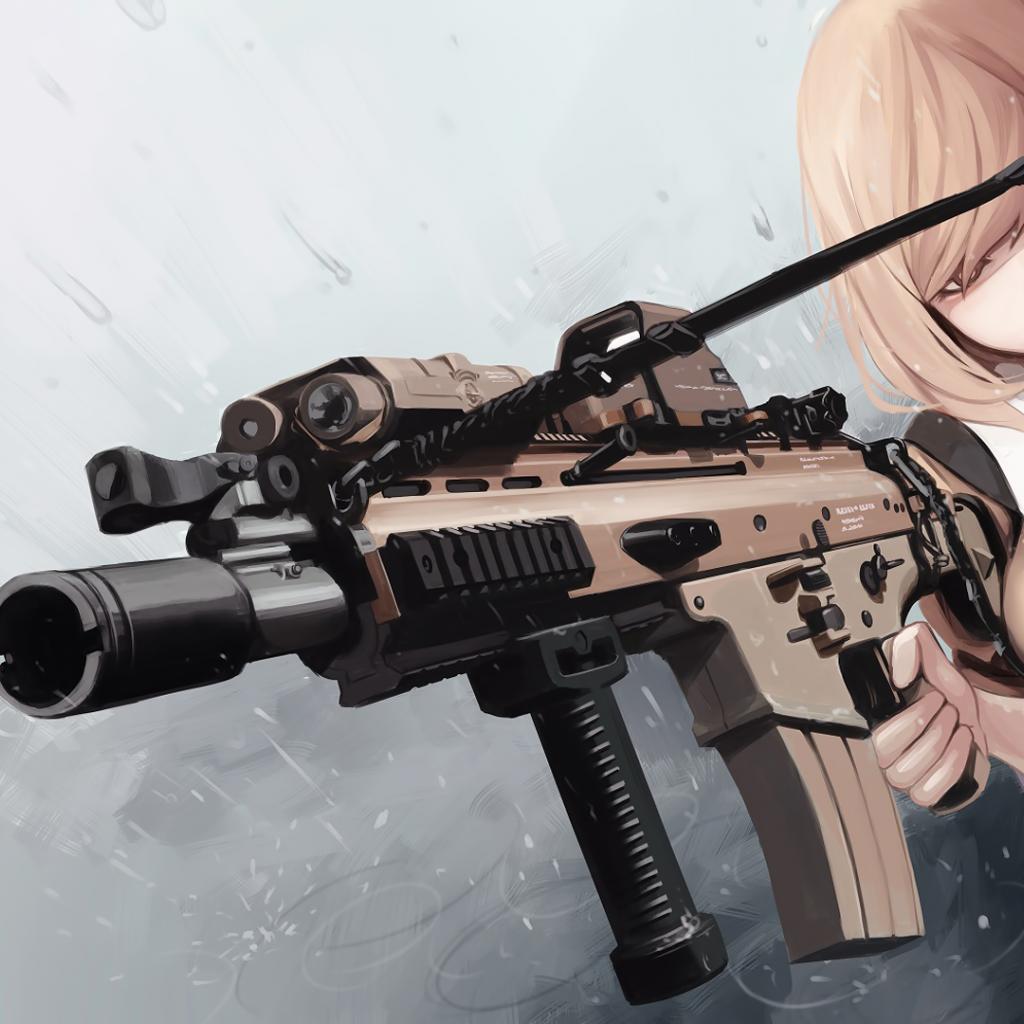 Wallpaper Automatic rifle in the hands of a girl anime
