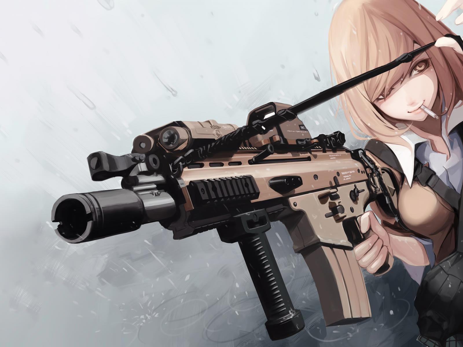 Wallpaper Automatic rifle in the hands of a girl anime