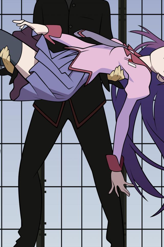 Wallpaper The guy holding the girl in his arms in the anime Monogatari Series