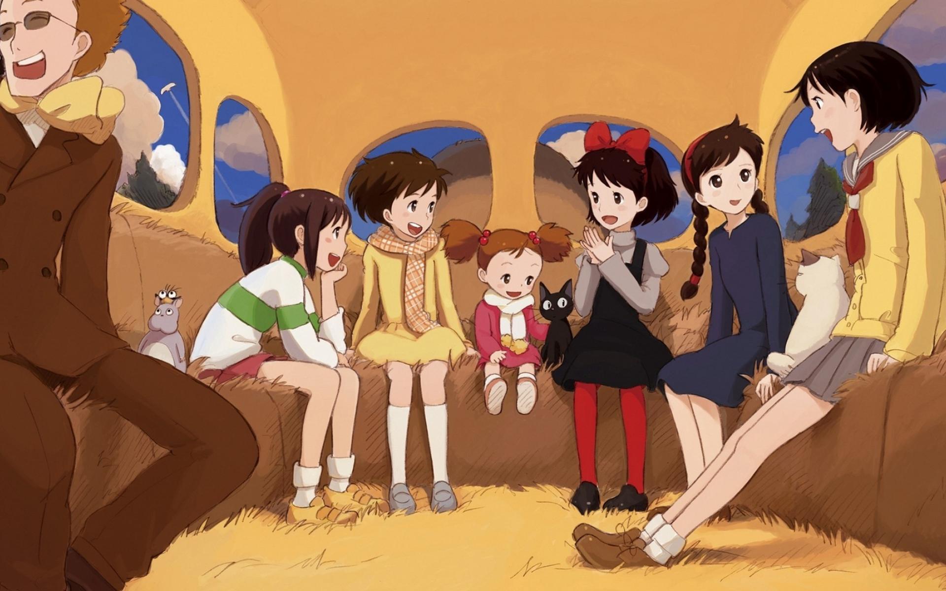 Wallpaper Children on the bus in the anime Kiki`s Delivery