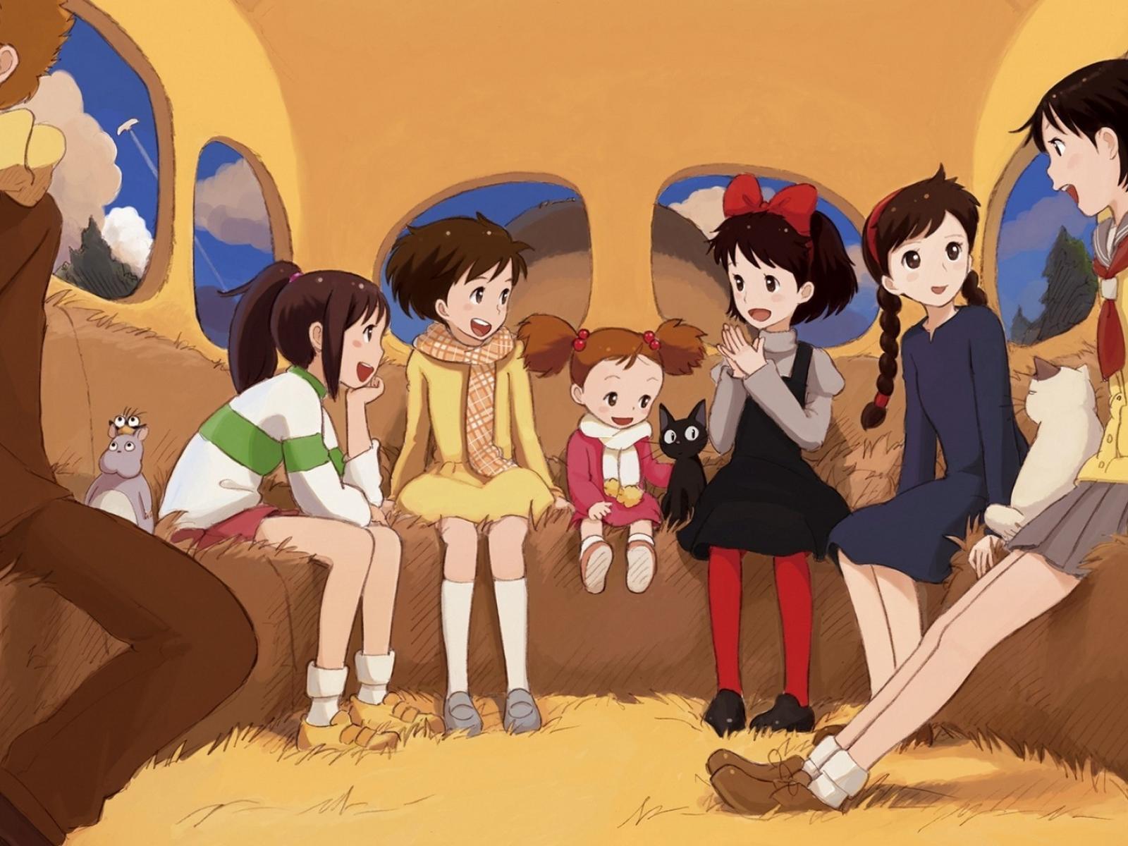 Wallpaper Children on the bus in the anime Kiki`s Delivery