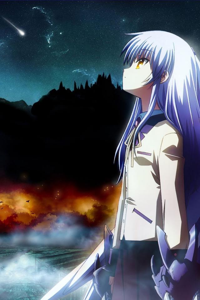 Wallpaper Angel in the night sky, anime Angelic rhythms