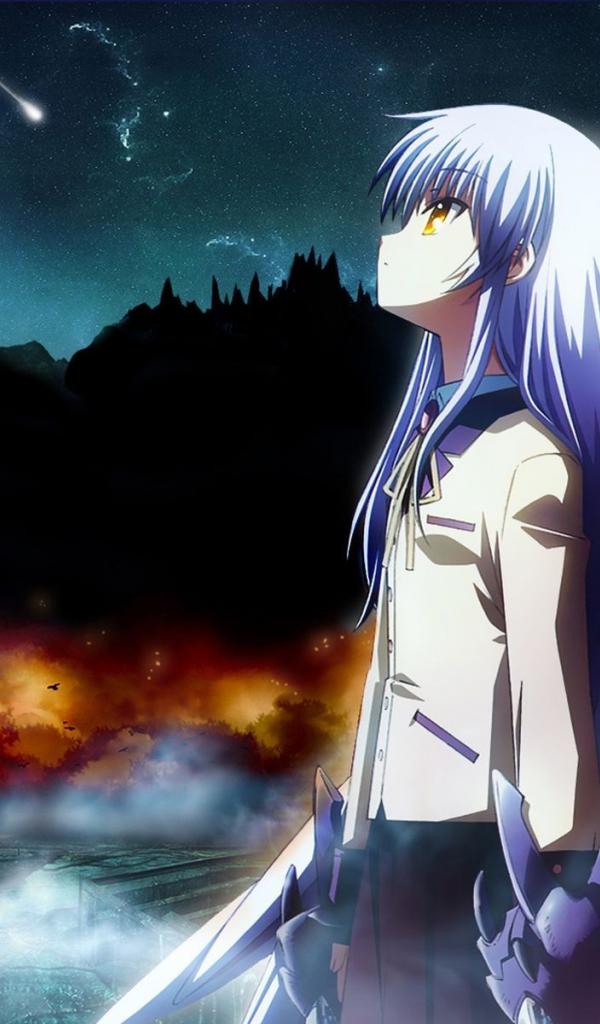 Wallpaper Angel in the night sky, anime Angelic rhythms