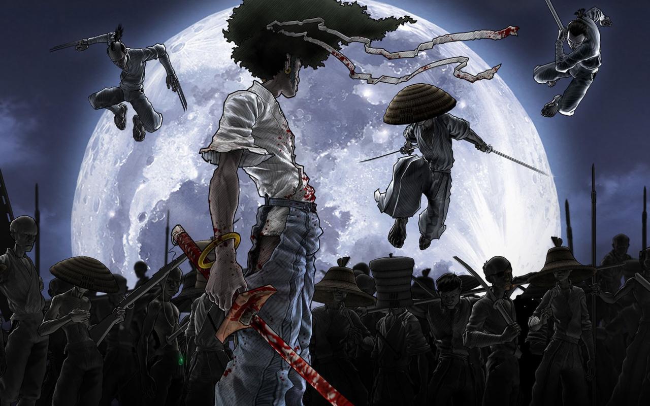 Wallpaper The battle in the anime Afro Samurai