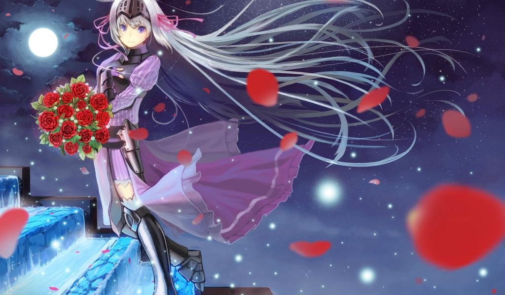 Wallpaper Girl with a bouquet in the anime I do not whether it`s a zombie