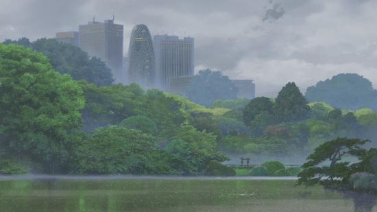 Wallpaper Skyscrapers are surrounded by greenery, drawing anime