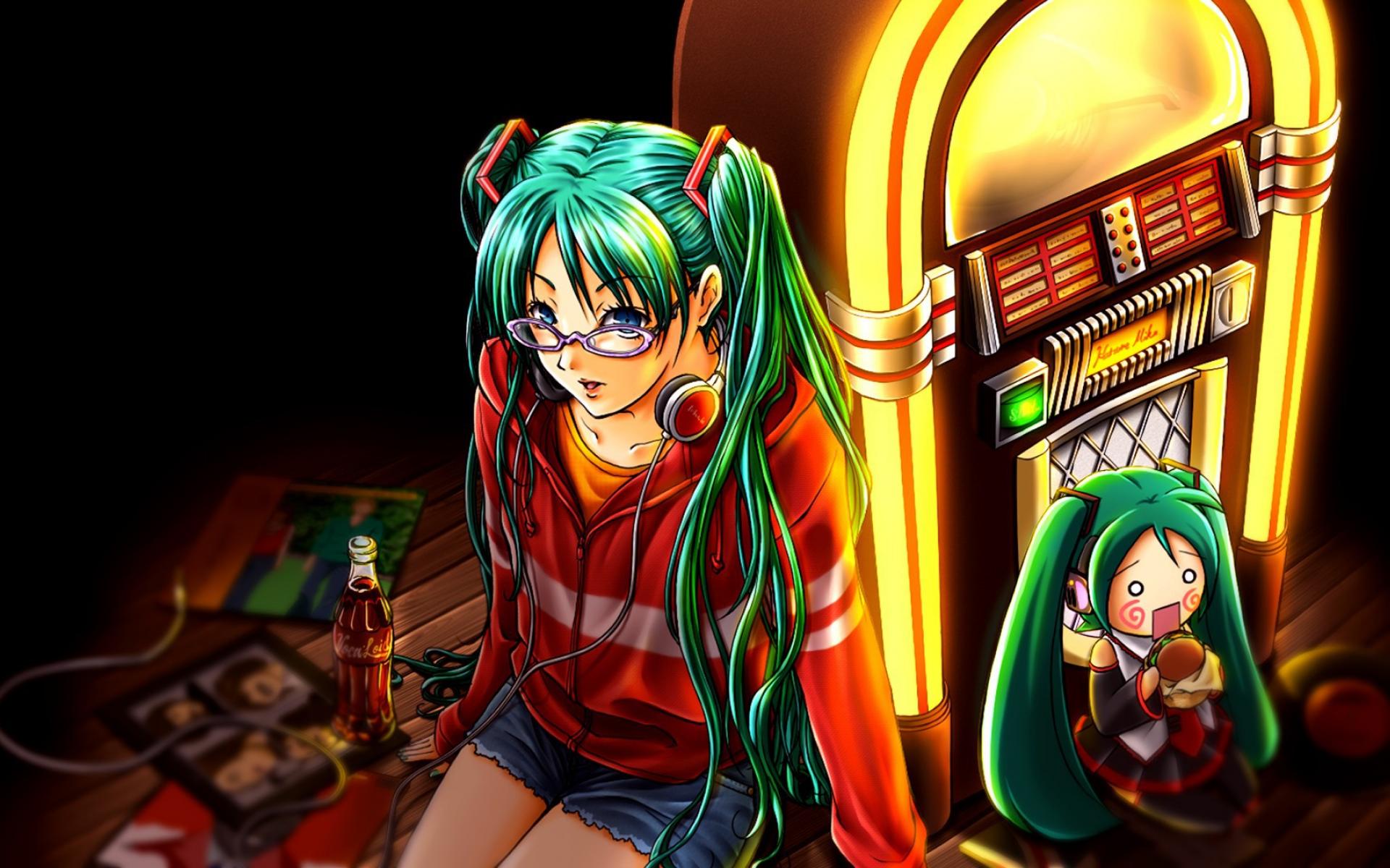 Wallpaper Vocaloid anime with a bottle of Coca-Cola