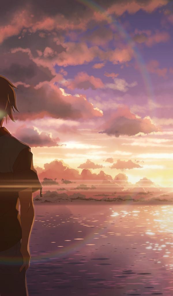 Wallpaper Boy and girl watching the sunset in the anime DJ Max