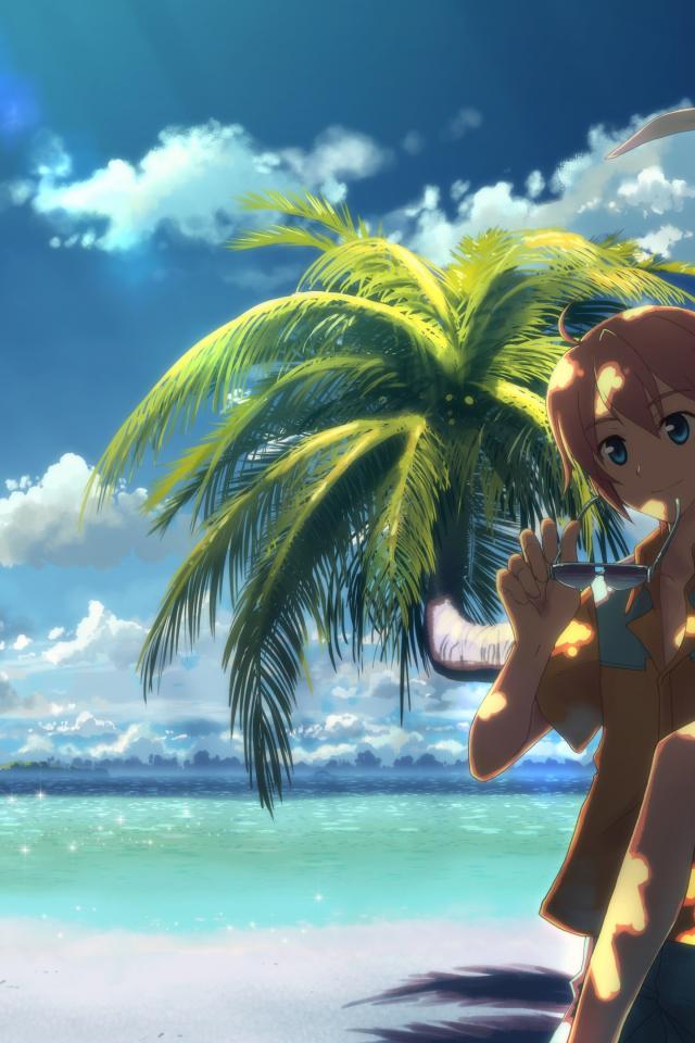 Wallpaper Couple on the beach in the anime DJ Max