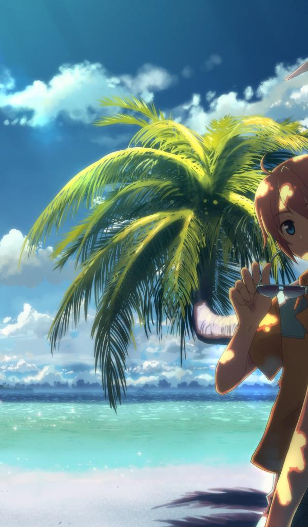 Wallpaper Couple on the beach in the anime DJ Max