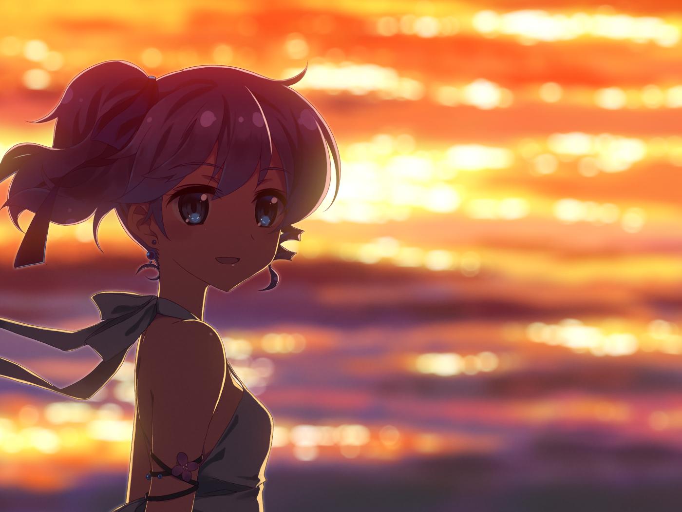 Wallpaper The girl on the background of the sea in the anime DJ Max