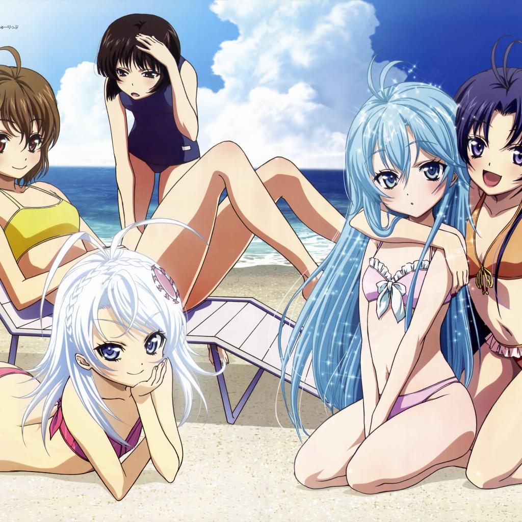 Wallpaper Girls on the beach in the anime My cousin - Alien