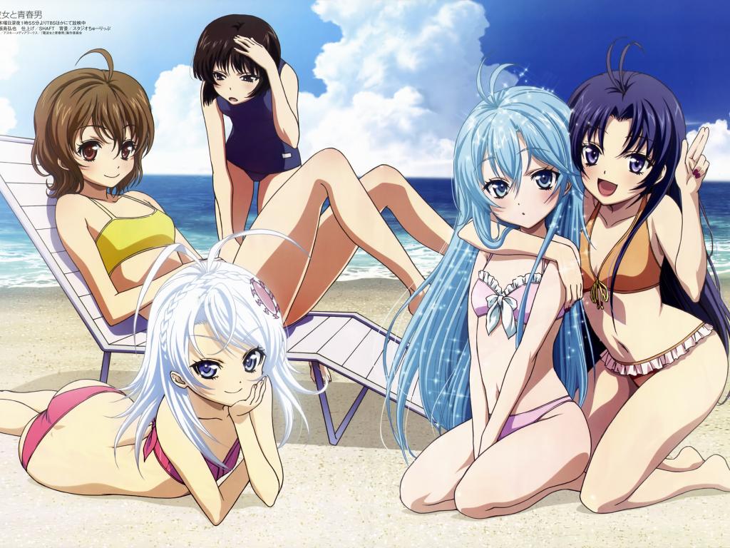 Wallpaper Girls on the beach in the anime My cousin - Alien