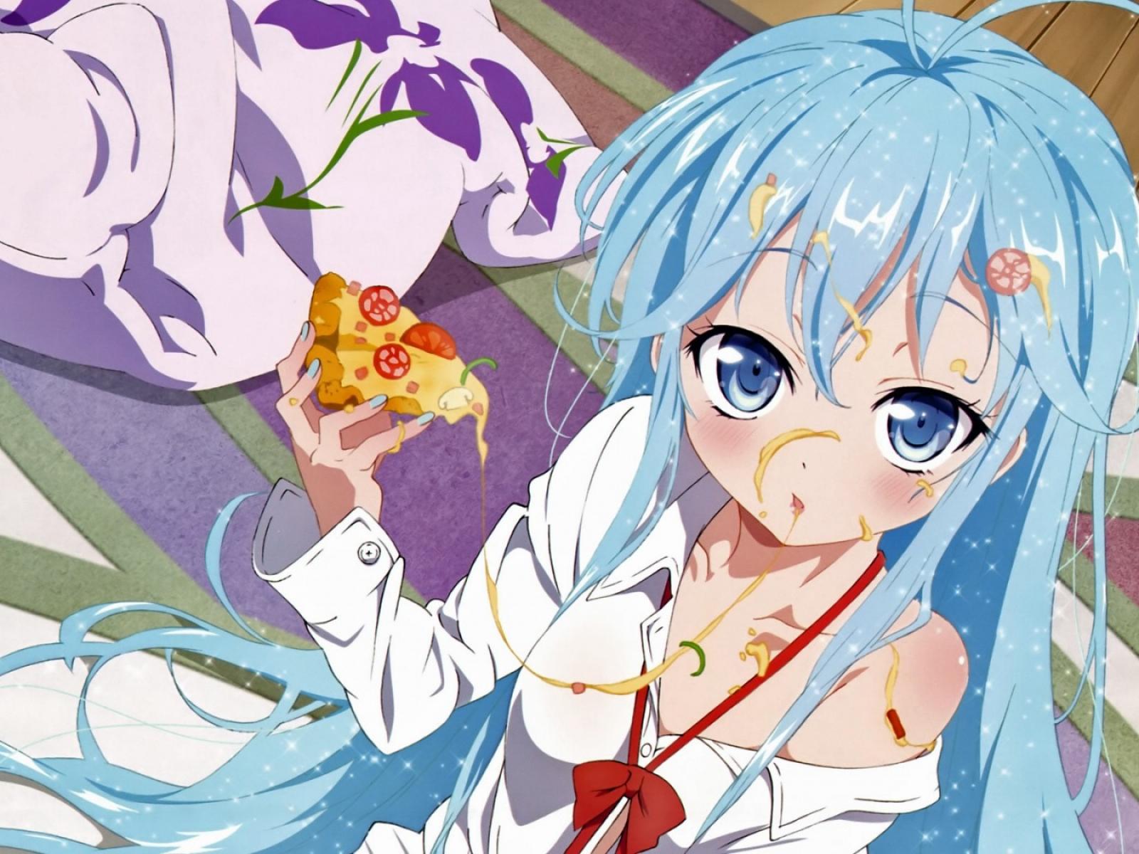 Wallpaper Girl eating pizza in the anime My cousin - Alien