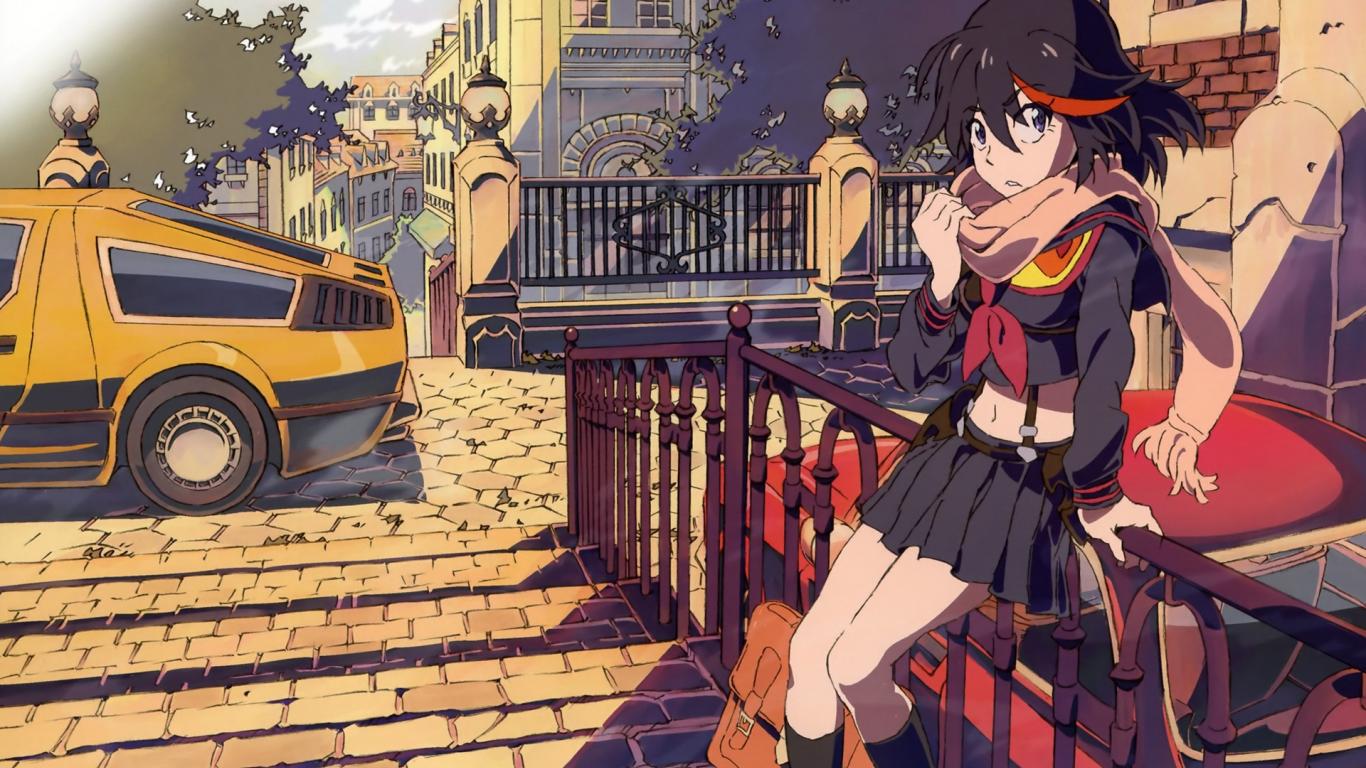 Wallpaper Matri girl sitting on the fence, anime