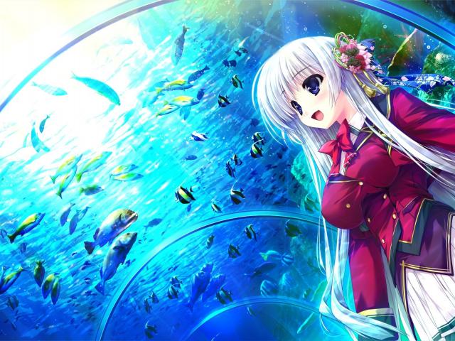 Wallpaper Girl in the aquarium in the anime still life in shades of gray