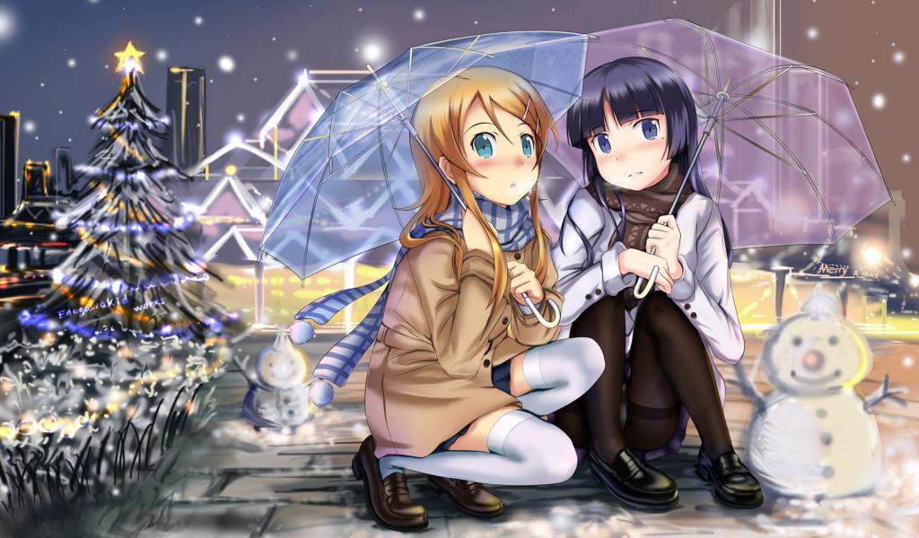 Wallpaper Girls under umbrellas in the anime My sister can not be the cutie