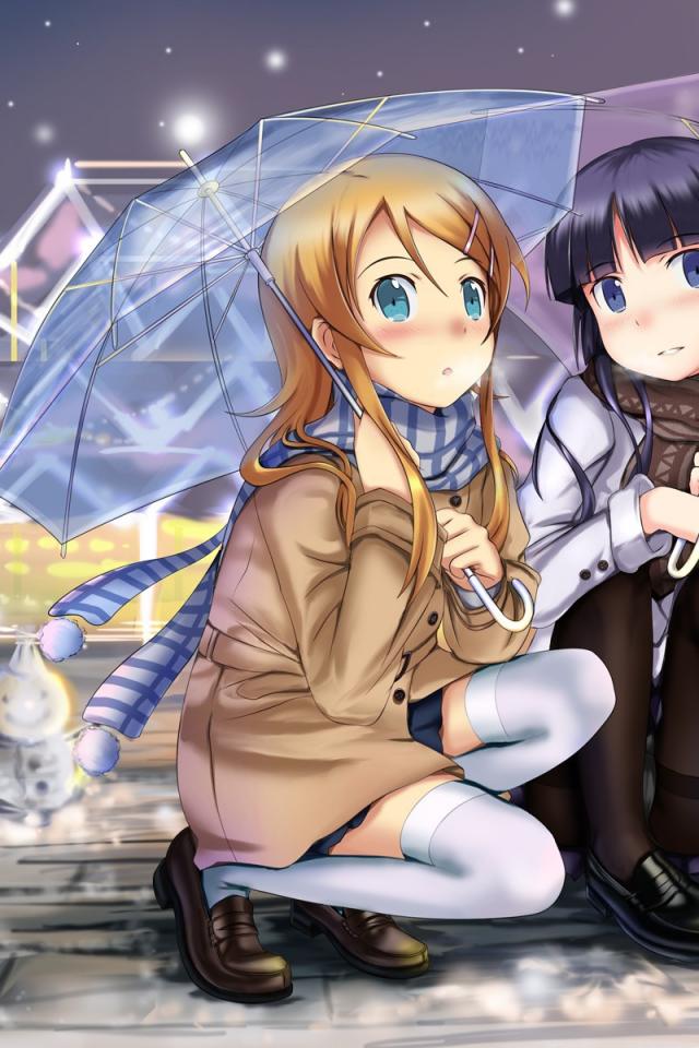Wallpaper Girls under umbrellas in the anime My sister can not be the cutie