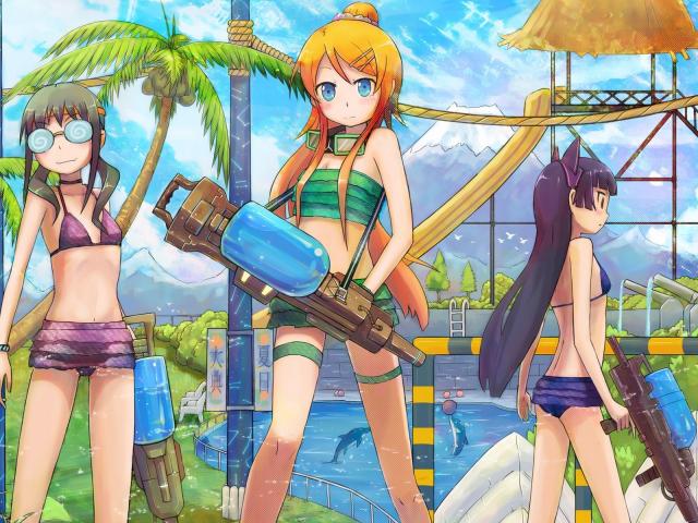 Wallpaper Girls at a water park in the anime My sister can not be the cutie