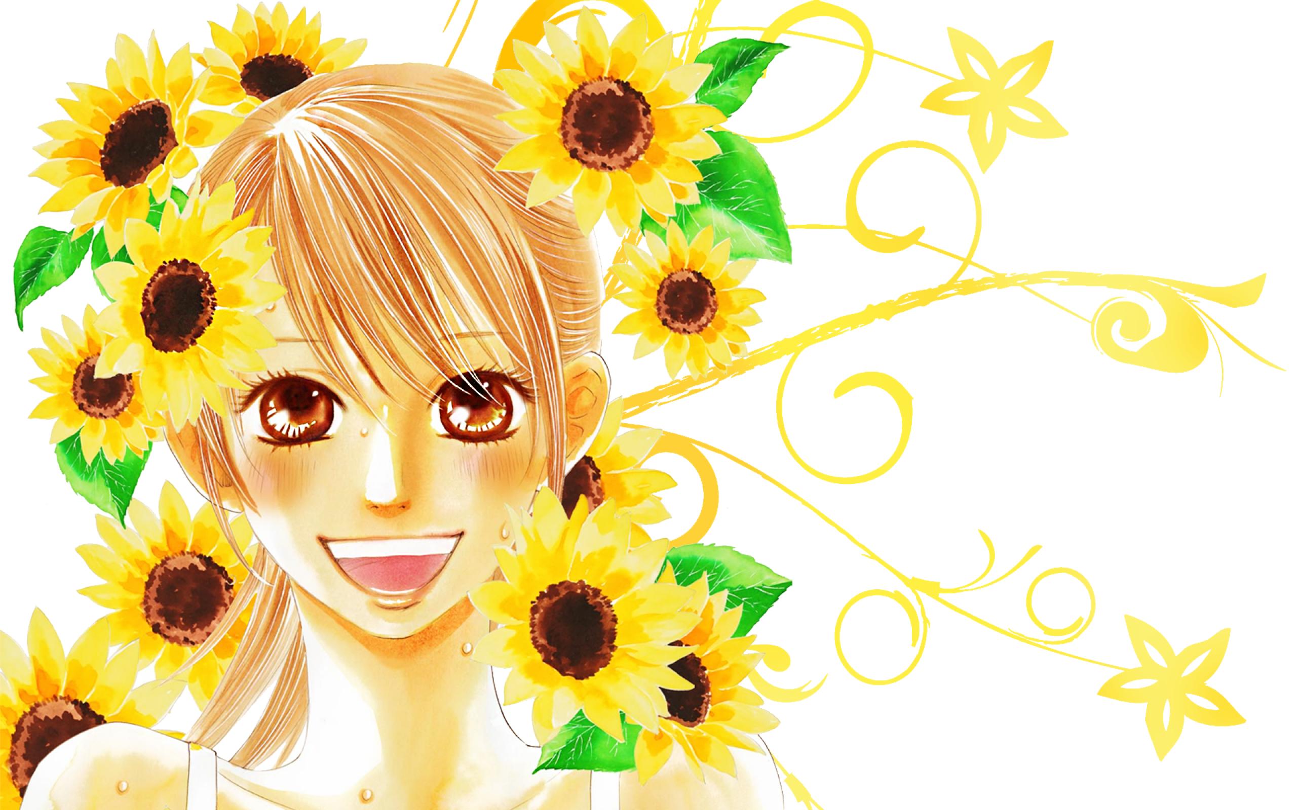 Wallpaper The girl in the flowers in the anime Tihayafuru