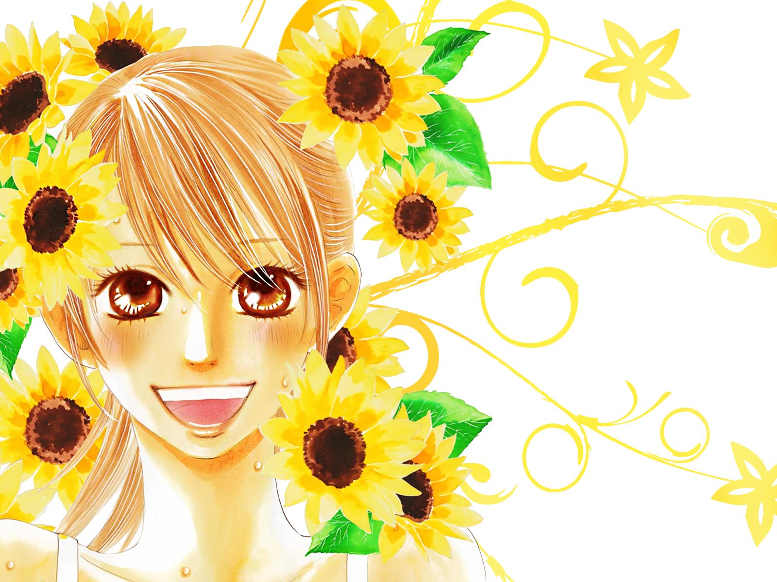 Wallpaper The girl in the flowers in the anime Tihayafuru