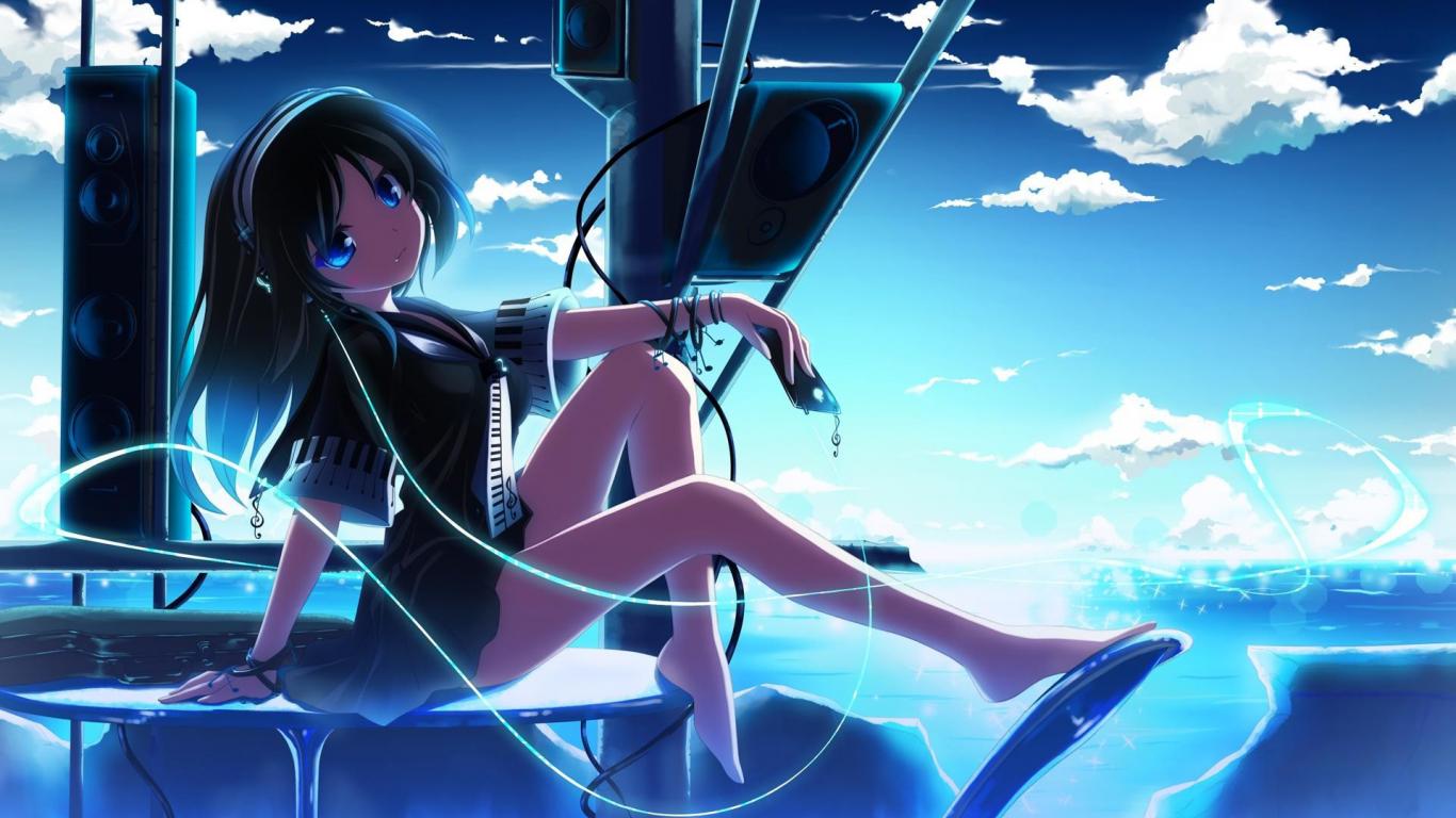 Wallpaper Anime girl enjoys music