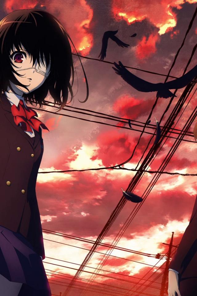 Wallpaper People under the red clouds in the anime Another
