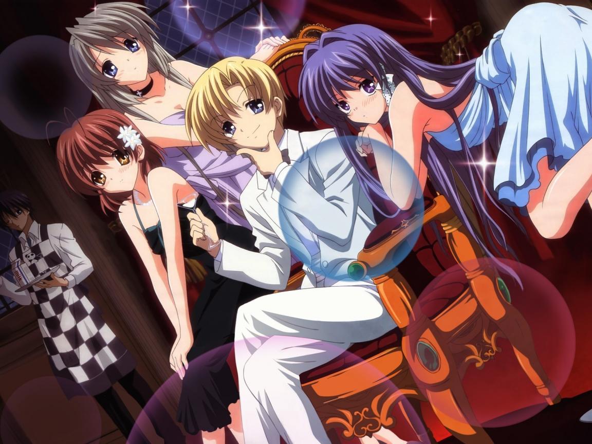 Wallpaper Friends in cafe in the anime Klannad