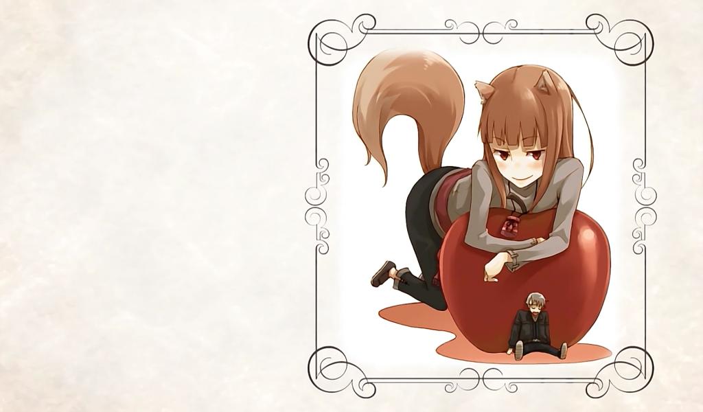 Wallpaper The girl on the apple in the anime Spice and Wolf