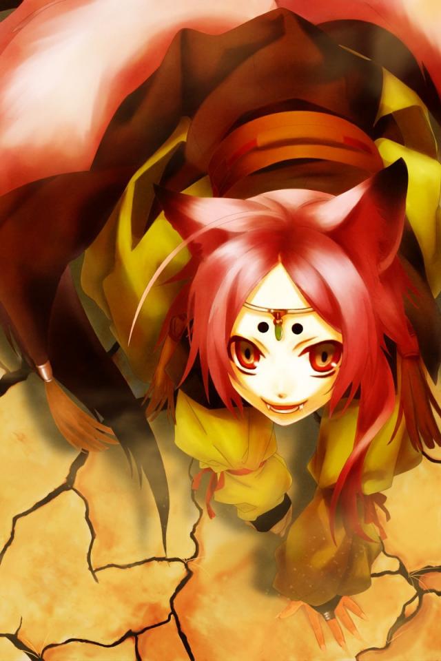 Wallpaper Fox girl on dry land, anime