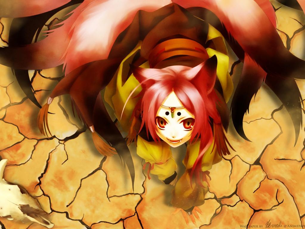 Wallpaper Fox girl on dry land, anime