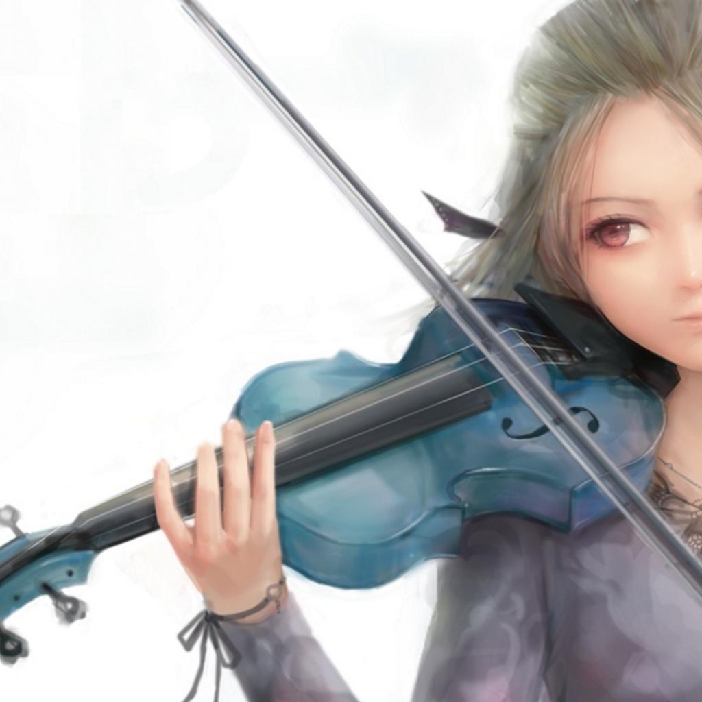 Wallpaper Girl playing the violin blue, drawing