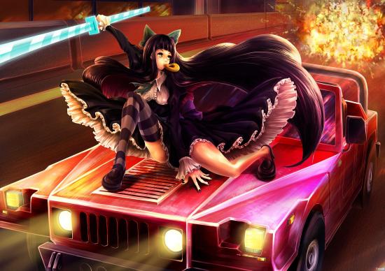 Wallpaper Hero Anime Anarchy Panty on the hood of a car
