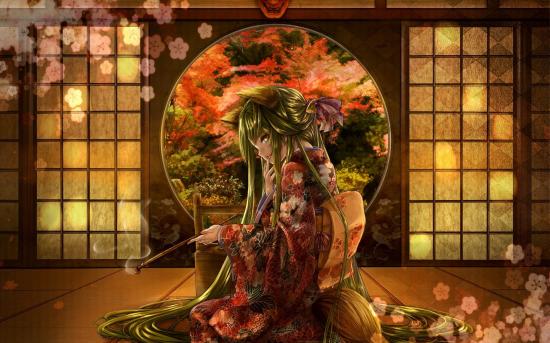 Wallpaper Anime girl with a burning bamboo stick