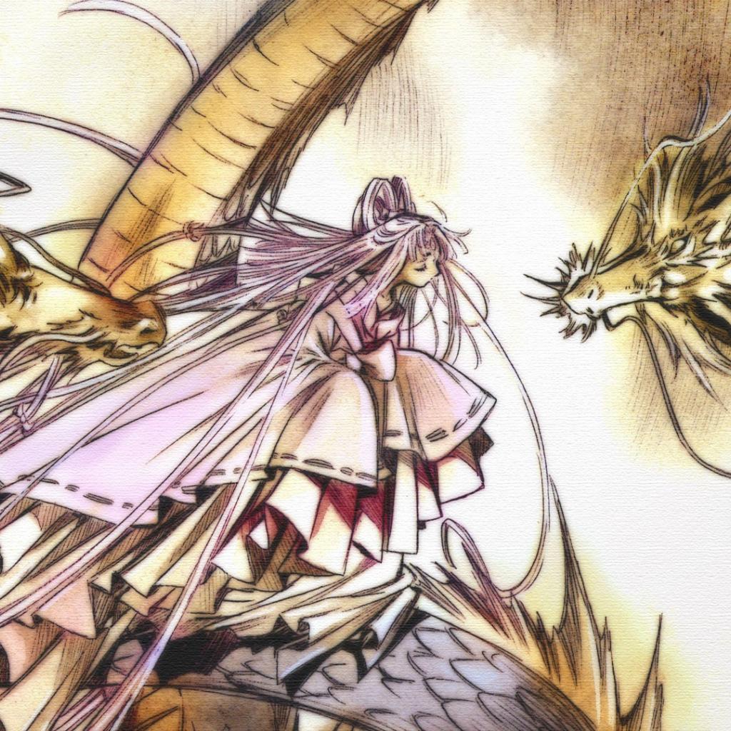 Wallpaper Dragons with a girl anime