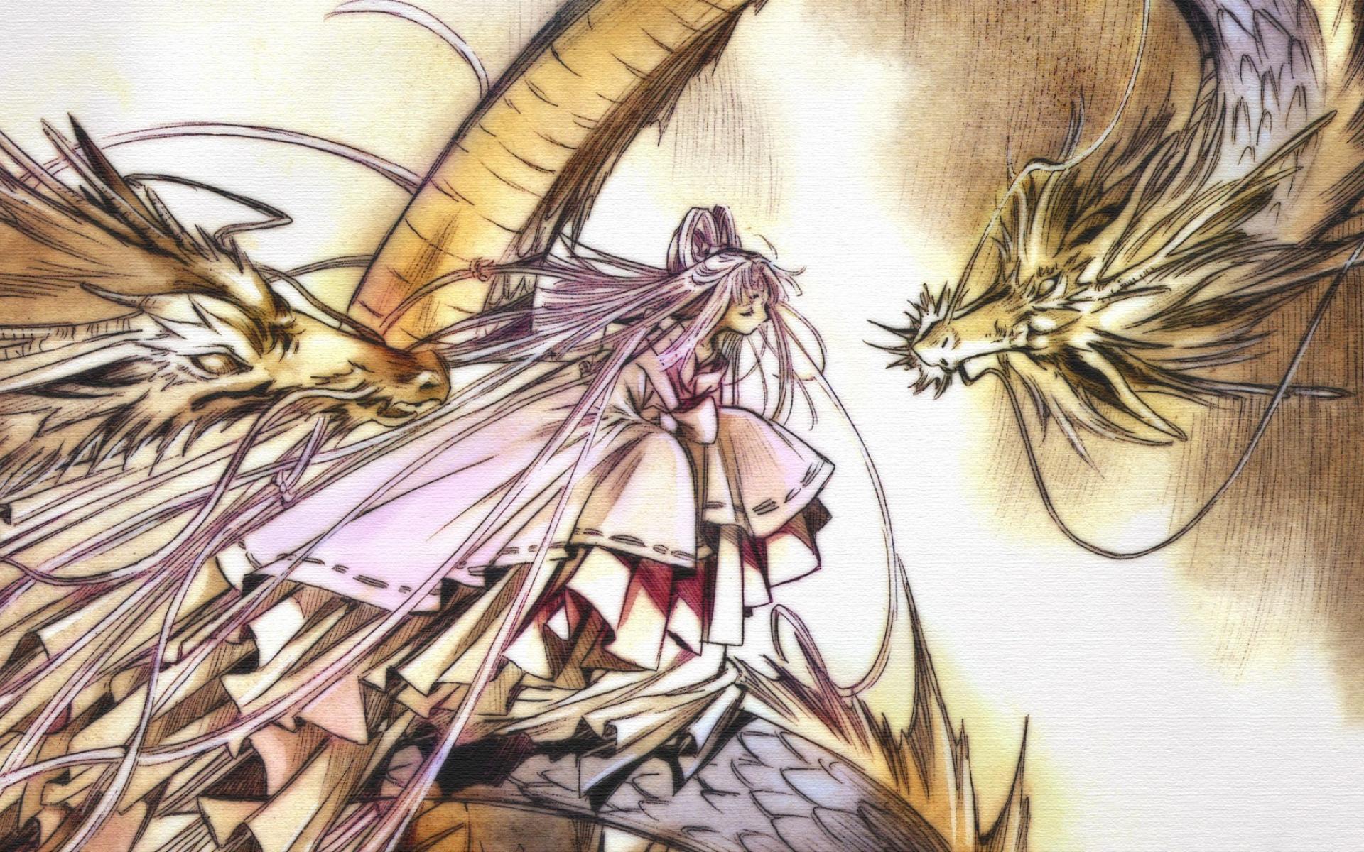 Wallpaper Dragons with a girl anime