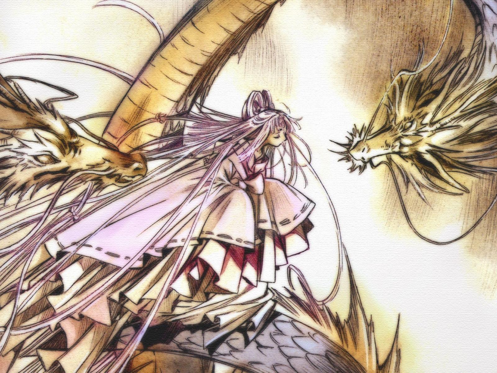 Wallpaper Dragons with a girl anime