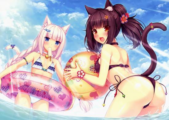 Wallpaper Relax on the beach, anime Neko Para