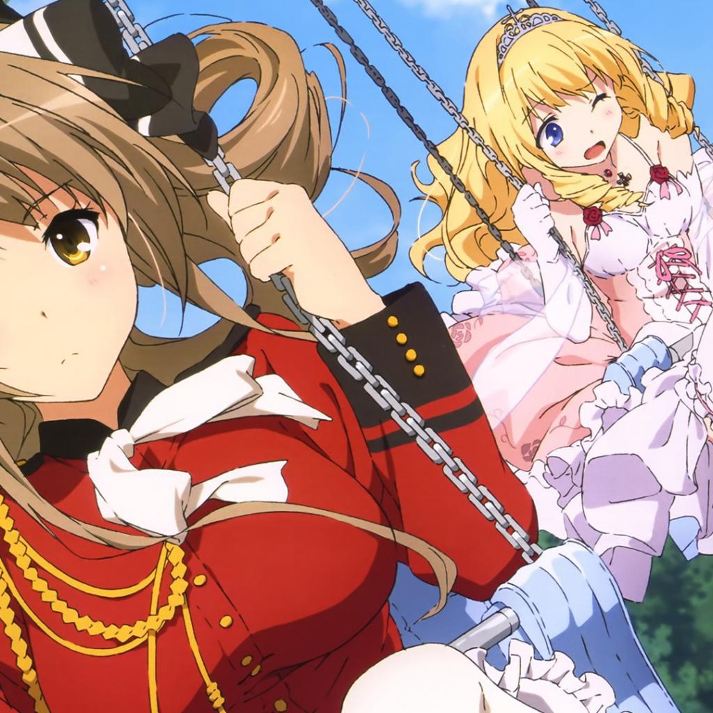 Wallpaper Anime girl on a swing in the park diamond
